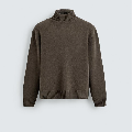 Áo len dáng suông, chất liệu dệt kim pha sợi len. Cổ cao, dài tay. Bo viền bằng vải gân.